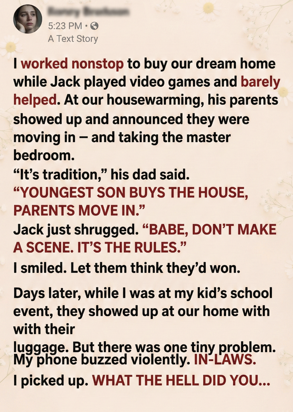 “This is my house. I paid for it. Not Jack. Not either of you. Me. And I’m done being treated like a walking ATM.”