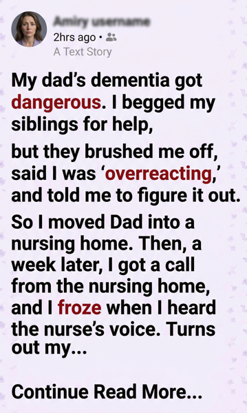 I toured facilities. I cried in parking lots. I asked a hundred questions. And finally, when Dad nearly set the kitchen on fire trying to boil water, I signed the papers and moved him into a nursing home.