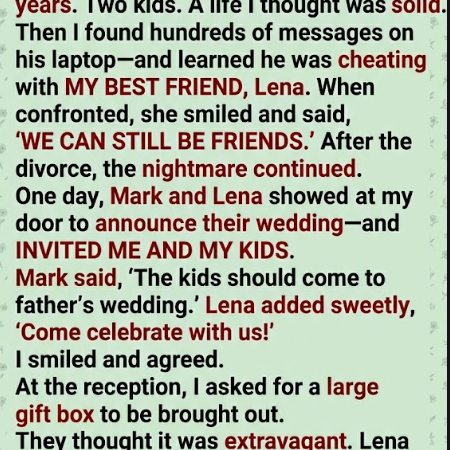 When Sarah is invited to the wedding of her ex-husband and ex-best friend, she chooses grace over chaos, or so it seems. In a story about betrayal, resilience, and the power of quiet truth, one woman brings a gift that no one saw coming… and no one will ever forget.