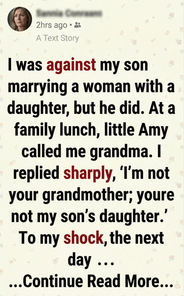The next day, I woke up still thinking about the lunch. The words I had said to little Amy echoed in my head. I tried to convince myself that I was right—that she wasn’t really my granddaughter.