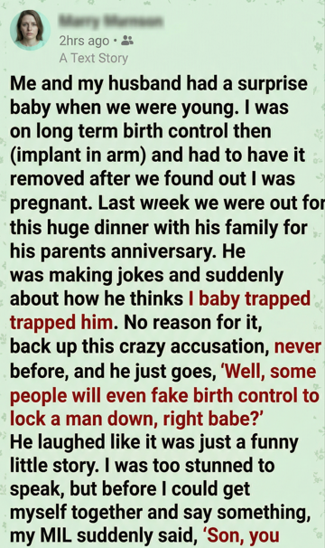 “A joke is supposed to be funny,” I said quietly. “But you just told your whole family you think I trapped you with our child.”