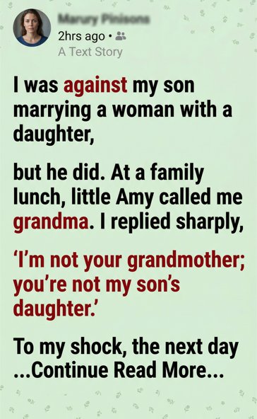 The next day, I woke up still thinking about the lunch. The words I had said to little Amy echoed in my head. I tried to convince myself that I was right—that she wasn’t really my granddaughter.