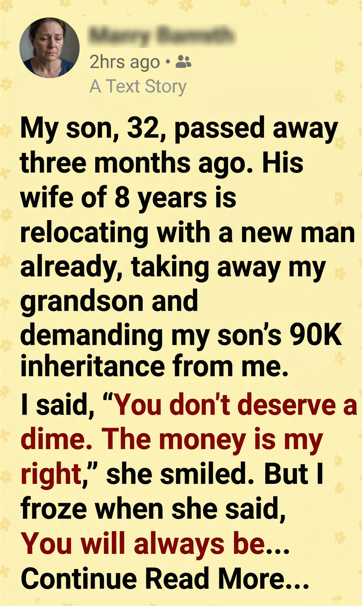 My heart tightened. The mention of my grandson made the grief rush back like a wave. I hadn’t even had the strength to visit as often as I should these past three months. Losing my son had broken something inside me.