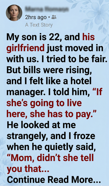 I’ve been raising my son alone since he was 5. He’s 22 now, and his girlfriend, Mia, started staying here full-time. At first, I tried to be fair. But bills were rising, and I felt like a hotel manager.