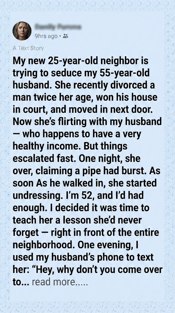 The aftermath was swift. She couldn’t walk to her mailbox without the neighbors snickering. Mrs. Higgins made sure the story reached three towns over by the next morning. A “For Sale” sign went up in Tiffany’s yard less than a week later. She moved out in the middle of the night, and my husband and I have enjoyed our peace and quiet ever since.