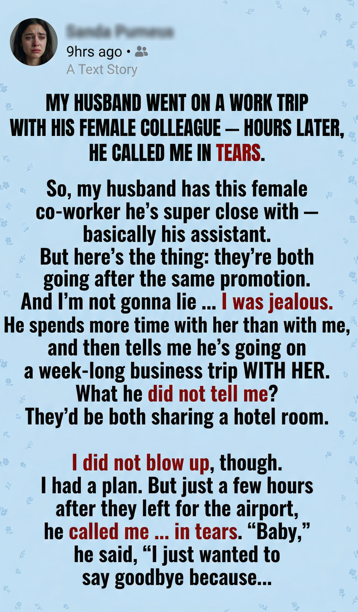 So, my husband has this female coworker he’s extremely close with—basically his assistant. They talk constantly, work late together, travel together. I tried not to be that wife, but I won’t lie… I was jealous.