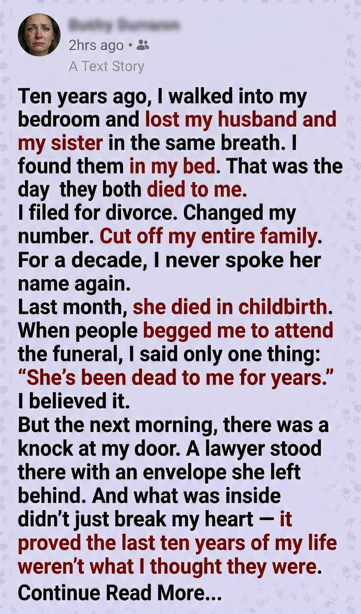 “I know what you saw that night ten years ago. I saw the look in your eyes before you slammed the door. I tried to explain, but you wouldn’t listen. And maybe that’s my fault… because I never forced you to hear the whole story.”