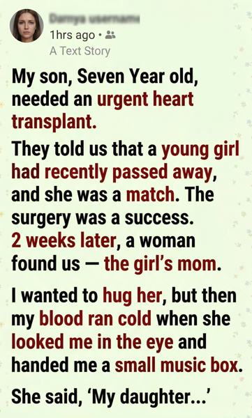 The melody played on, fragile notes threading through the silence. My son pressed a hand to his chest, right where the new heart beat. His expression changed—calm, almost distant.