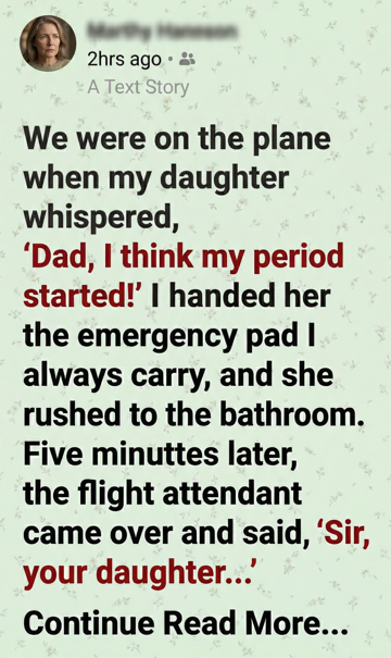 I stood up immediately and followed her down the narrow aisle of the plane. My mind was racing. It was her first period, and I knew she was already embarrassed about it. The last thing I wanted was for her to feel alone.
