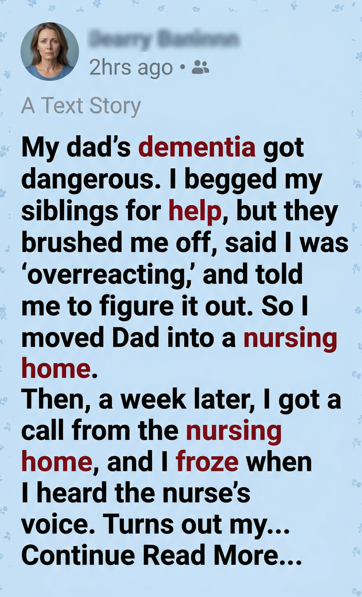 I cried for days. I replayed every moment. The look on Dad’s face when we unpacked his sweaters. The way he asked, “Am I staying here?” and I forced a smile.