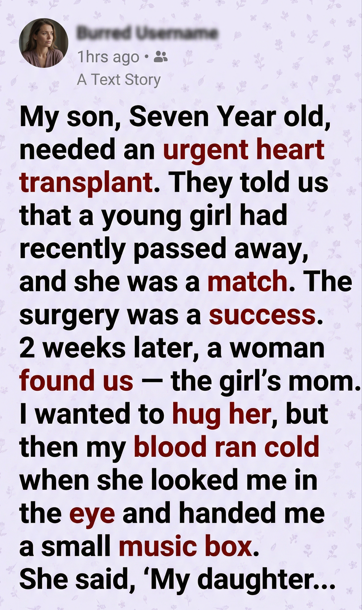The melody played on, fragile notes threading through the silence. My son pressed a hand to his chest, right where the new heart beat. His expression changed—calm, almost distant.