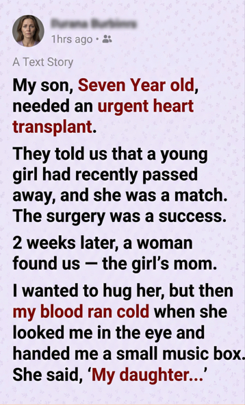 The melody played on, fragile notes threading through the silence. My son pressed a hand to his chest, right where the new heart beat. His expression changed—calm, almost distant.