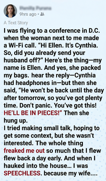 About twenty minutes into the flight, once we were cruising, she connected to the planeâs Wi-Fi and made a call. I wasnât eavesdroppingâshe wasnât whispering.