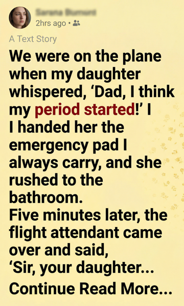 I stood up immediately and followed her down the narrow aisle of the plane. My mind was racing. It was her first period, and I knew she was already embarrassed about it. The last thing I wanted was for her to feel alone.