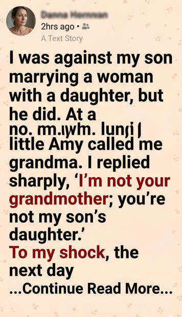 The next day, I woke up still thinking about the lunch. The words I had said to little Amy echoed in my head. I tried to convince myself that I was right—that she wasn’t really my granddaughter.