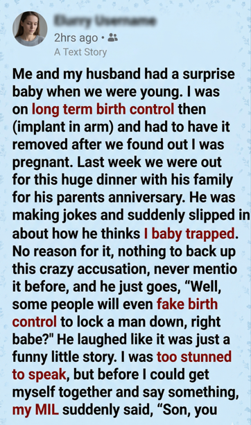 “A joke is supposed to be funny,” I said quietly. “But you just told your whole family you think I trapped you with our child.”