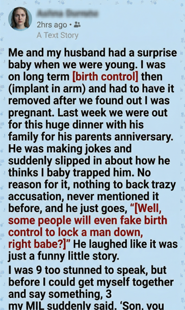 “A joke is supposed to be funny,” I said quietly. “But you just told your whole family you think I trapped you with our child.”
