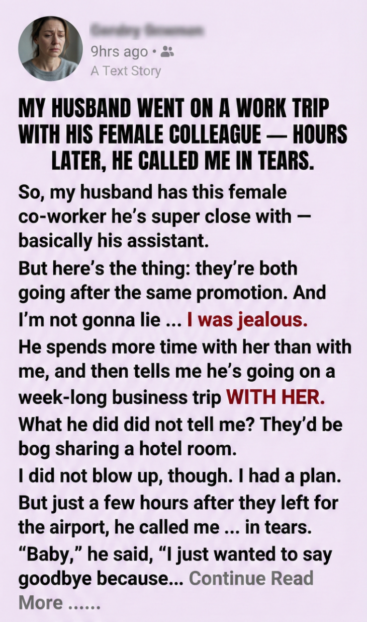 So, my husband has this female coworker he’s extremely close with—basically his assistant. They talk constantly, work late together, travel together. I tried not to be that wife, but I won’t lie… I was jealous.