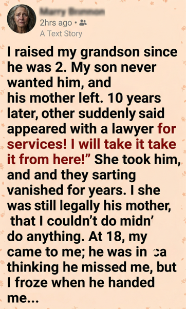 “I can’t undo what I did, but I won’t stand in the way anymore. The papers enclosed transfer everything meant for his care back into your name. Not because I deserve forgiveness—but because you always deserved the choice I took from you.”