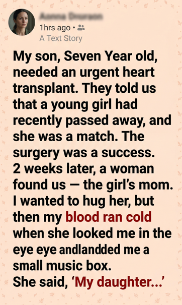 The melody played on, fragile notes threading through the silence. My son pressed a hand to his chest, right where the new heart beat. His expression changed—calm, almost distant.