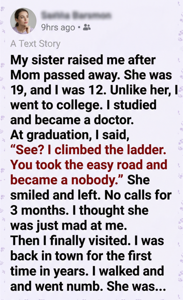 “I’m not mad at you. I never was. You were 12 when I became everything—sister, parent, provider. I made choices so you wouldn’t have to. I gave up things so you could have them.”