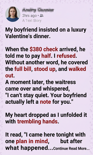 “I wanted this dinner to be perfect. Not because of the price, but because I thought we were ready. Ready to be partners in everything. Life, decisions… even small things like this.”
