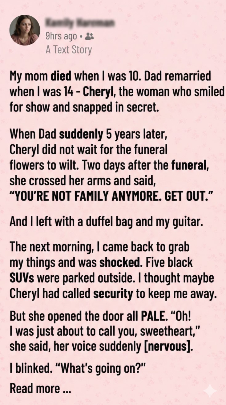 Cheryl started screaming as the guards stepped onto the porch, but I didn’t watch. I walked past her, past the fake tears and the greed, and stepped back into my father’s house. I set my guitar down in the hallway. I was finally home, and for the first time in five years, the air felt clear.