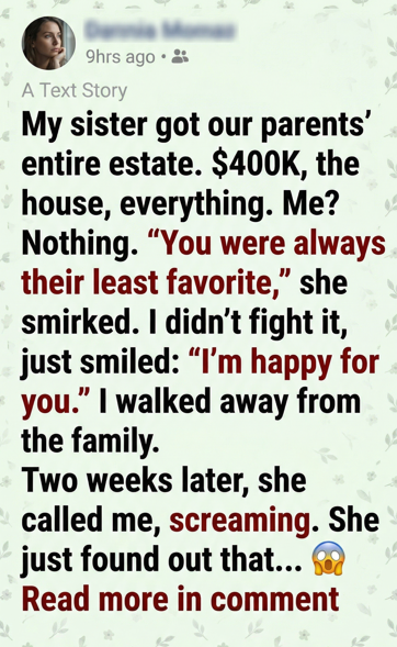 “The house… it’s mortgaged twice,” she continued, her voice shaking now. “The bank is already calling. And the ‘$400K’? It’s not cash—it’s tied up in some failing business Dad invested in before he died. I can’t even access it!”
