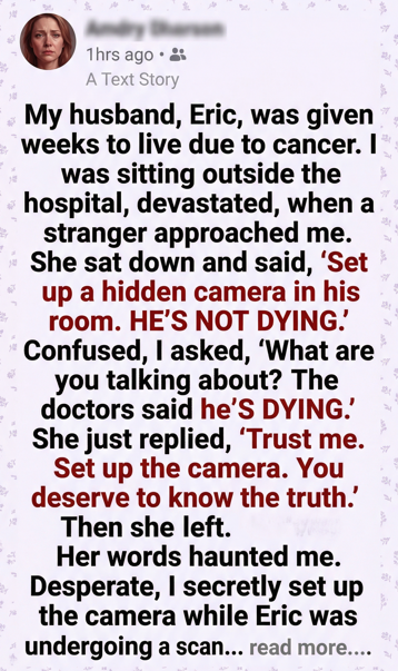 Her words haunted me. Desperate, I secretly set up the camera while Eric was undergoing a scan.