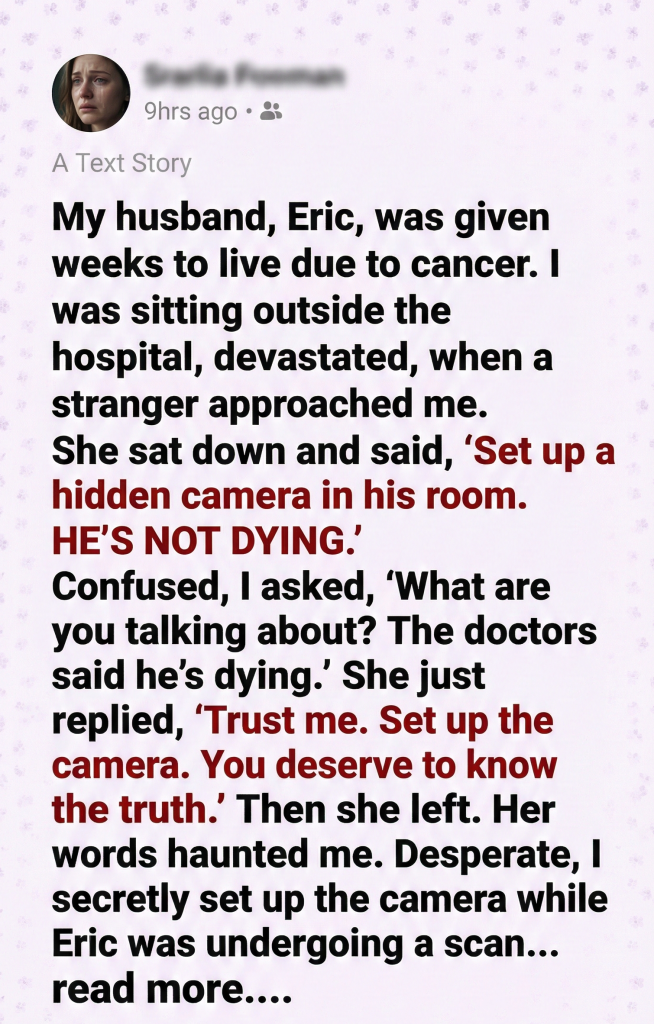Her words haunted me. Desperate, I secretly set up the camera while Eric was undergoing a scan.