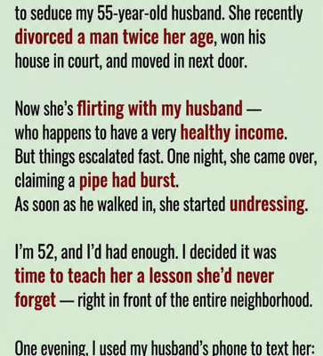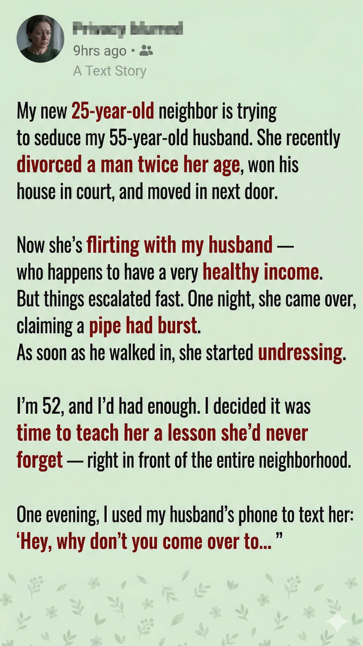 The aftermath was swift. She couldn’t walk to her mailbox without the neighbors snickering. Mrs. Higgins made sure the story reached three towns over by the next morning. A “For Sale” sign went up in Tiffany’s yard less than a week later. She moved out in the middle of the night, and my husband and I have enjoyed our peace and quiet ever since.
