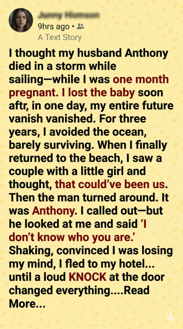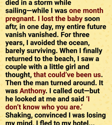 I thought I had buried my past along with my husband, who I believed had died three years ago. But on a distant beach, I saw him — alive, smiling, holding hands with a woman and a little girl. My world shattered all over again. Was it really him? And why was he with another family?