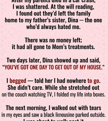 āYour parents set up a contingency clause,ā Sterling explained. āIt was a test of character. The terms were simple: If Dina took you in and cared for you despite there being āno money,ā the family trustāworth roughly five million dollarsāwould be unlocked and split evenly between the two of you.ā