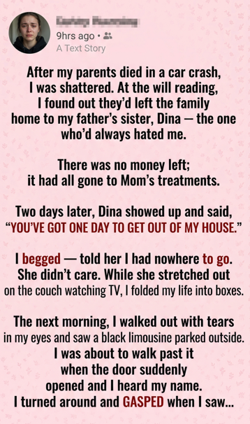 I sat back, tears streaming down my faceānot of sadness, but of relief. My parents had been looking out for me from beyond the grave. They knew I couldnāt survive living with a woman who hated me, so they ensured I wouldnāt have to.