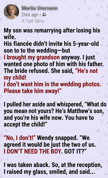She thought she could erase my grandson from his own father’s wedding. She thought wrong. 🍷