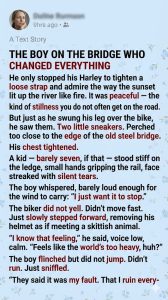 He stopped running that day. Jack ended up becoming a fierce advocate for the kid, working with social services to get him into a safe environment with an aunt who actually cared. He became the boy’s mentor, showing up to every baseball game, every graduation, every bad day, with that loud, rumbling Harley. The boy on the bridge grew up to be a counselor who saved hundreds of others, all because one stranger stopped to tighten a strap, saw the pain, and decided not to look away.