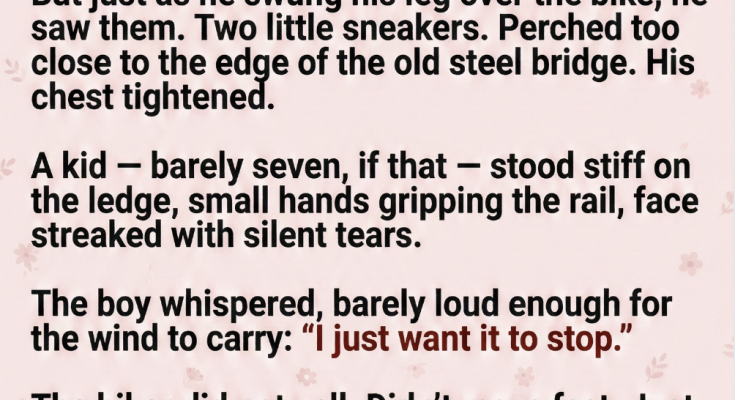 The biker, a man named Jack who had spent the last decade running from his own ghosts, felt the world stop. He looked at the boy’s trembling shoulders and saw himself forty years ago. He didn’t panic. He knew that one wrong move, one sudden lunge, and gravity would win.