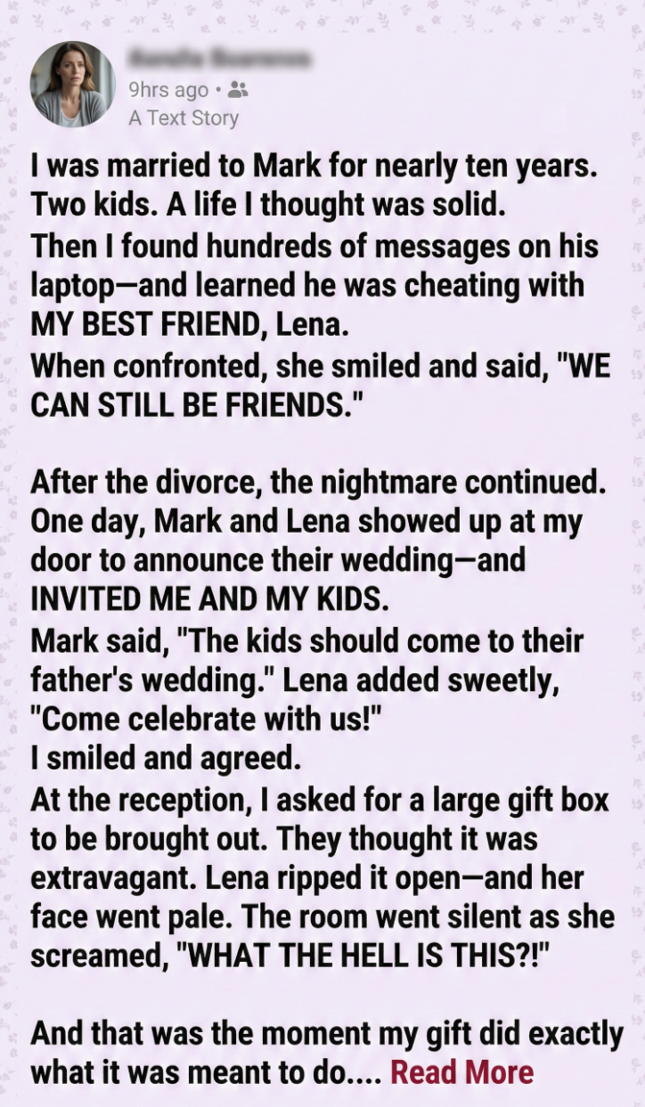 When Sarah is invited to the wedding of her ex-husband and ex-best friend, she chooses grace over chaos, or so it seems. In a story about betrayal, resilience, and the power of quiet truth, one woman brings a gift that no one saw coming… and no one will ever forget.