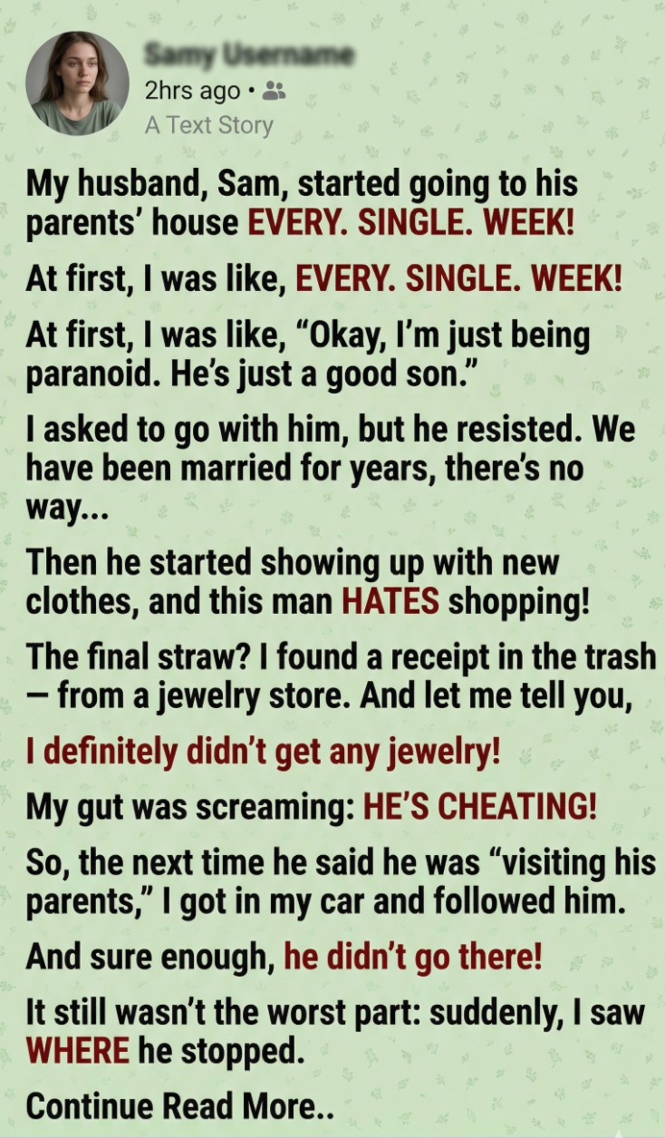 Sam stepped out of the car holding a small gift bag—the kind jewelry stores use. My stomach twisted.