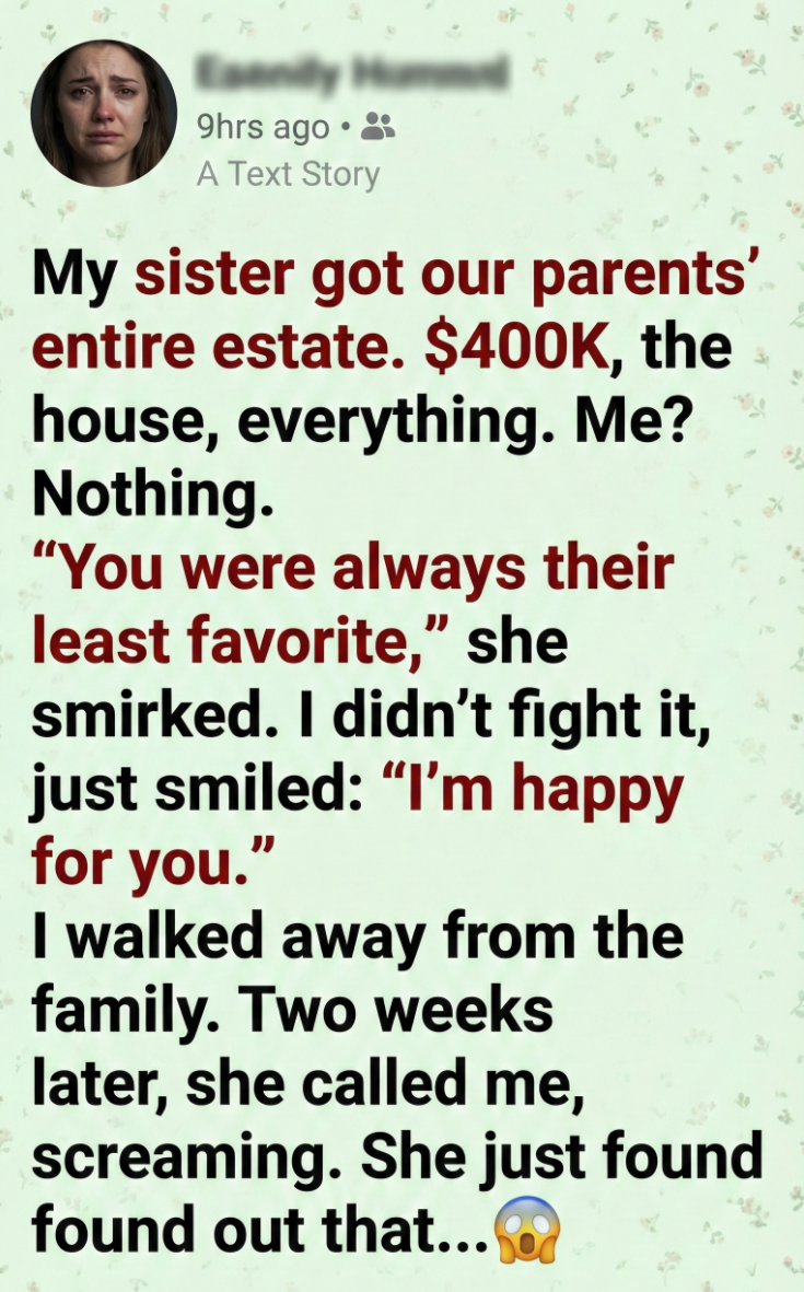 I walked away with nothing. Two weeks later, she realized why I was smiling.