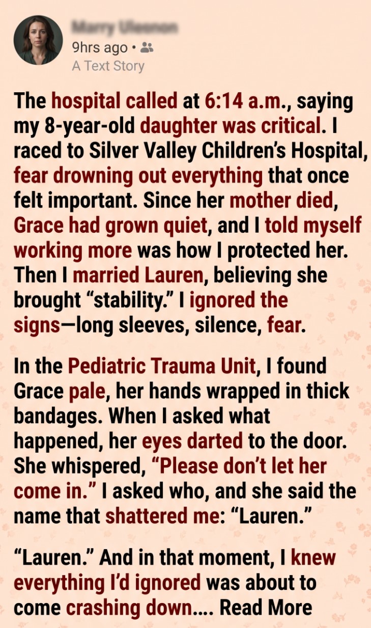 When I arrived at the hospital, the air felt heavier than usual, thick with antiseptic and unspoken dread, and the look the nurse gave me after I said my daughter’s name told me that whatever I was about to see would change me.