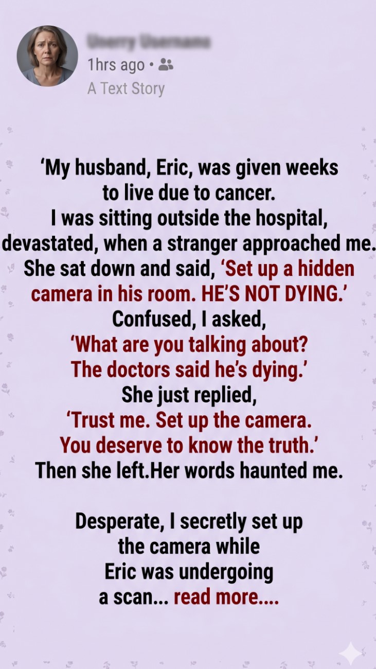 Her words haunted me. Desperate, I secretly set up the camera while Eric was undergoing a scan.