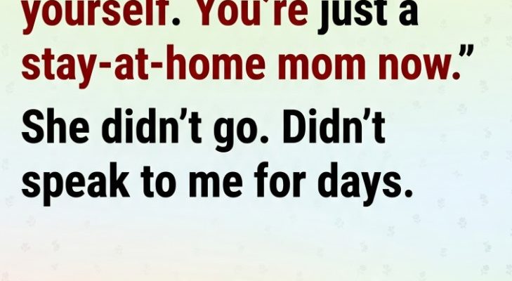 She gave a small, sad smile. “Every time I talked about dreams or plans, you reminded me I was ‘just’ a stay-at-home mom. After a while, I stopped sharing.”