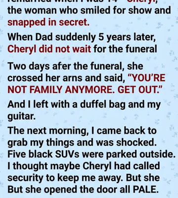Cheryl started screaming as the guards stepped onto the porch, but I didn’t watch. I walked past her, past the fake tears and the greed, and stepped back into my father’s house. I set my guitar down in the hallway. I was finally home, and for the first time in five years, the air felt clear.