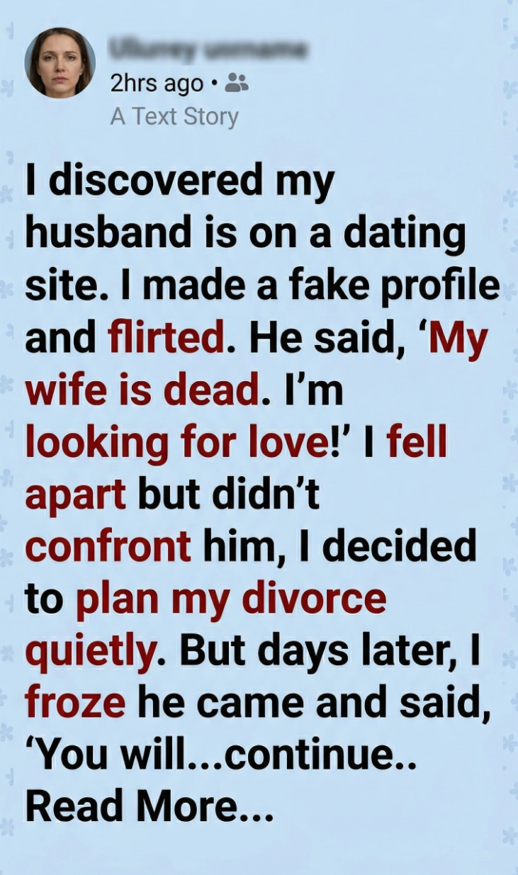 I looked at him—really looked at him—for the first time in months. Not the stranger from the dating site. Not the man who lied. But the person I once chose.
