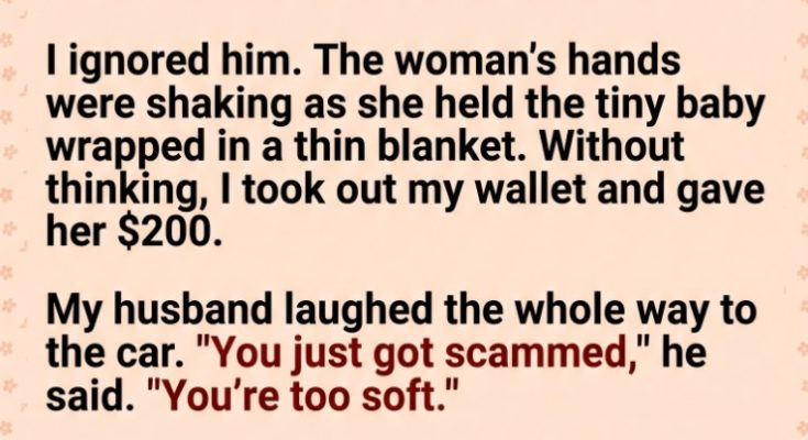 She explained that a month ago had been the worst day of her life. Her husband had suddenly passed away, and she had been left alone with a newborn and no nearby family. Her bank account had been temporarily frozen due to paperwork issues after his death, and she couldn’t access her money.