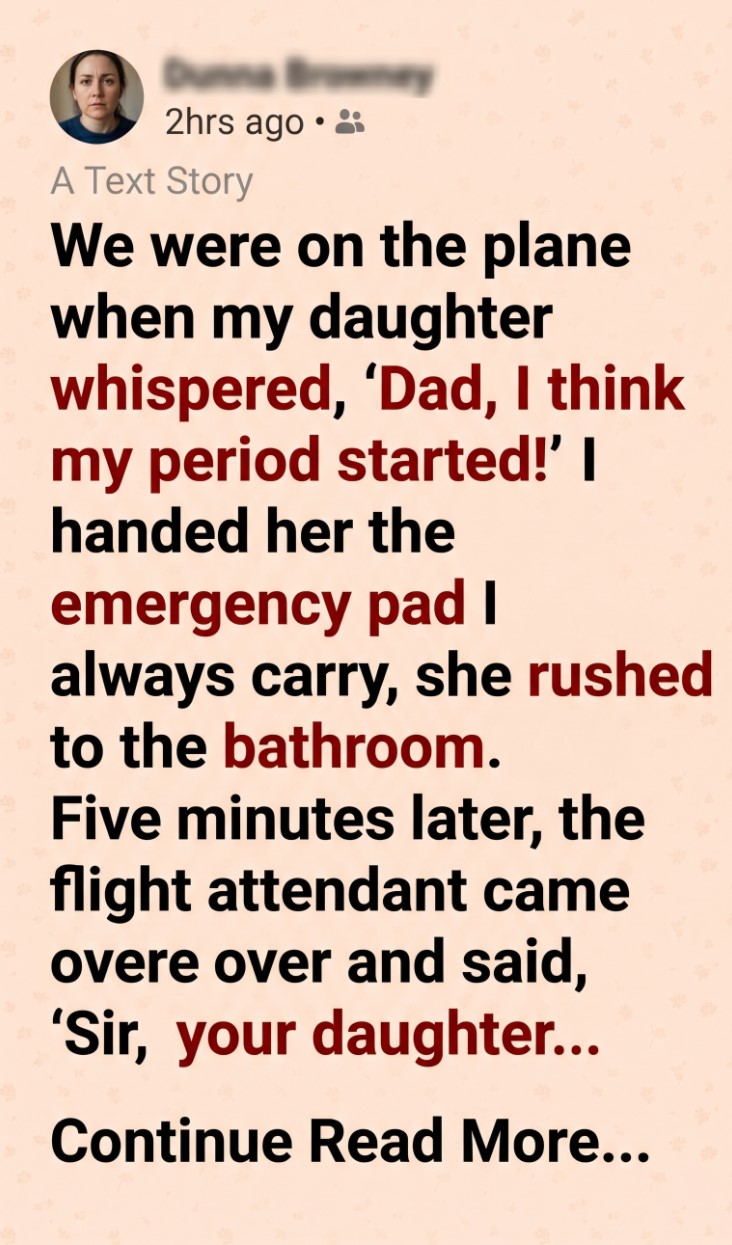 I stood up immediately and followed her down the narrow aisle of the plane. My mind was racing. It was her first period, and I knew she was already embarrassed about it. The last thing I wanted was for her to feel alone.